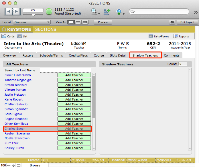 - The newly-added teacher will appear in the Shadow teachers area of this section.