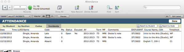 Attendance Incidents Reports
