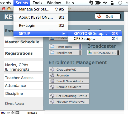 - From KEYSTONE Central Nav > Scripts menu, select KEYSTONE Setup.
