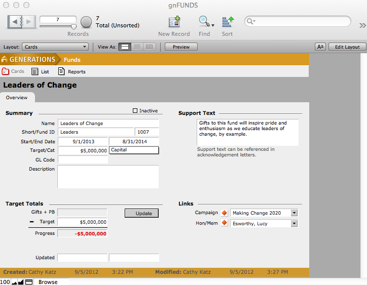 NOTE: A Category must be selected otherwise Transactions Totals on the Transactions page in Constituents will not account for any transactions linked to the fund.