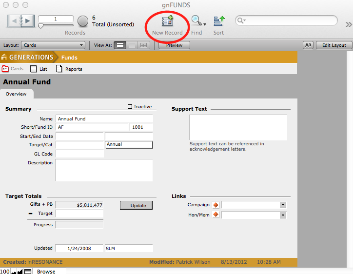 - Create a new record by clicking on the New Record button in the status area, or by selecting New Record from the Records menu.