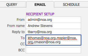 - Enter the list of recipients into the To field. Multiple recipients should be separated by a comma.