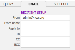 - Click the Email tab. Enter an email address to the From field. This email address will be what appears in the message within the receiver’s inbox.