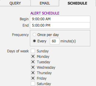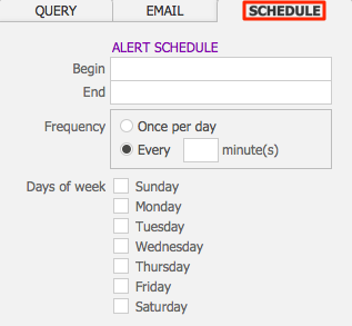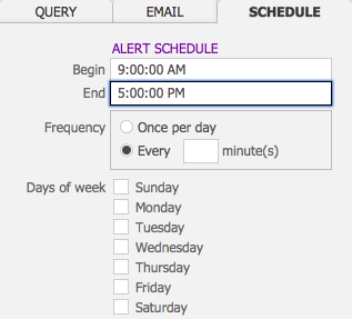 - Click the Schedule tab to set the timing for your alert.