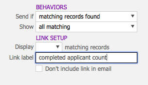 - Select “matching records found” if you would like the alert to be sent displaying all the records found that match the specifications you have chosen.