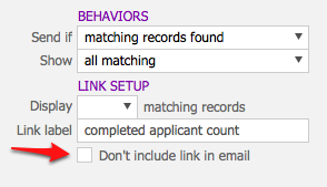 - Click the “Don’t include link in email” checkbox if you do not wish to include a link in your alert email.