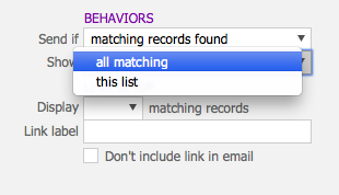Within the Send if field, there are 3 options: “always“, “matching records found” and “new records found“.