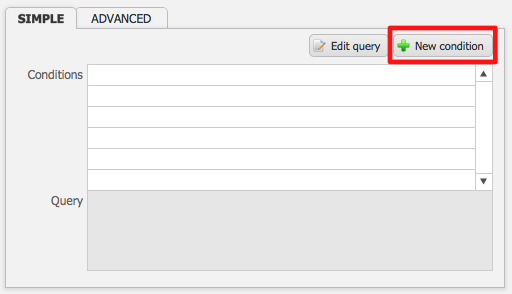 - On the Simple tab, click the green New Condition button.