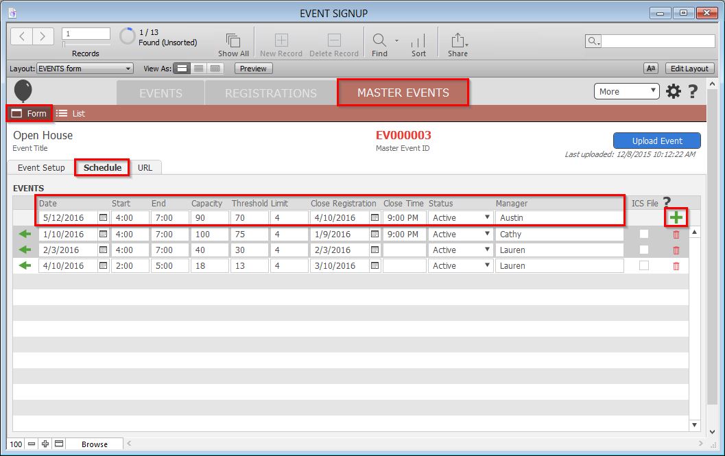 - Perform a Find for the master event you wish to schedule an event occurrence for.
