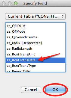 - The Specify Field dialog box will appear with a list of all fields in the file.