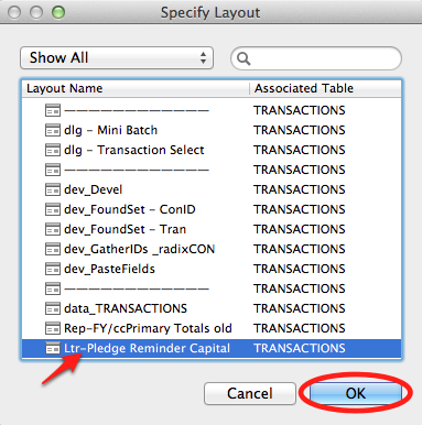 - Switch to Layout mode by selecting Layout from the FileMaker Pro View menu, or by changing the mode at the bottom of the window.