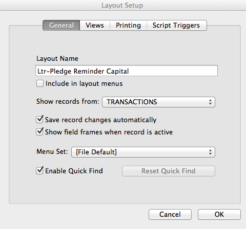 - In Layout mode, select Layout Setup from the FileMaker Pro Layouts menu.