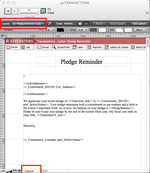 Now you need to give your layout a more meaningful name. Letters in GENERATIONS start with the prefix Ltr-. To be consistent, your letter layout should follow the same convention. The name of the layout should indicate the letter’s purpose.