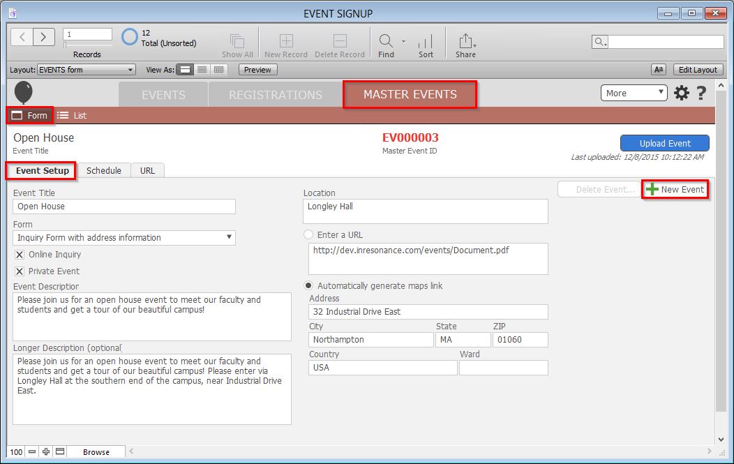 - Click the blue Upload Event button to commit your changes.