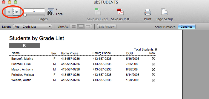 - Click either Students by Grade or Students by Class. Roster pages will generate for each individual grade or for each teacher, organized alphabetically. Navigate through the report by clicking on the book to change pages.