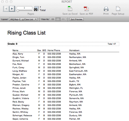 - If you wish to print the report click File > Page Setup to make any necessary changes to the page layout. Click File > Print from the FileMaker menu.