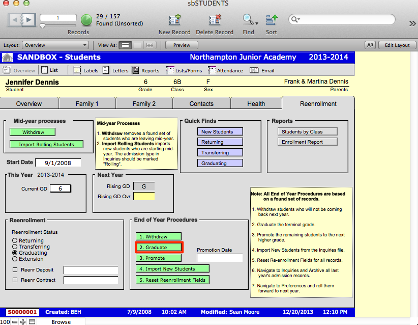 - Navigate back to sbSTUDENTS > Reenrollment.