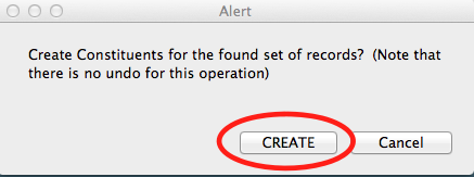 - A dialog box will pop up asking you to confirm that you want to create constituent files in GENERATIONS for these missing families. To proceed, click CREATE. There are now constituent records in GENERATIONS for the new families.