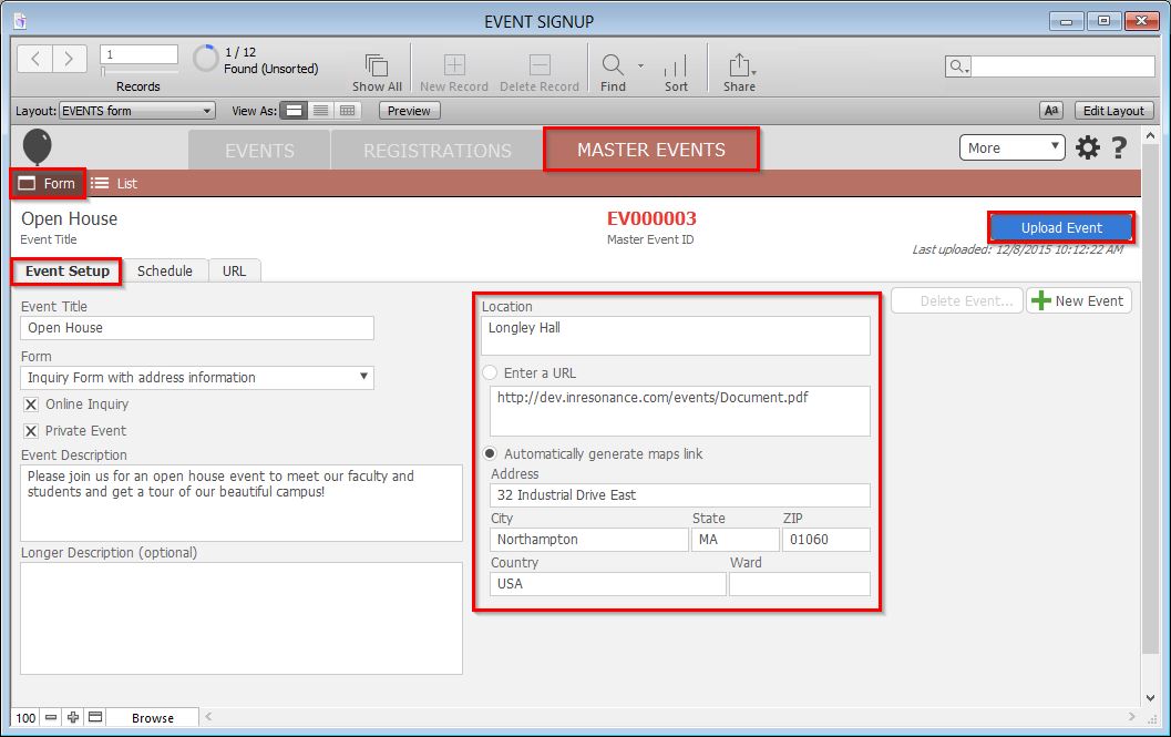 - Click the blue Upload Event button.