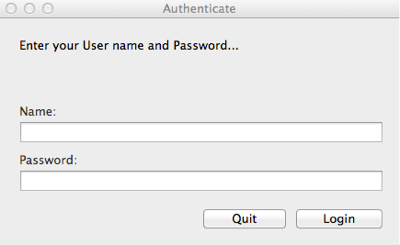5. You will be presented with an authentication dialog box. Enter your User name and Password (provided by your FileMaker Server administrator) then click Login to continue.