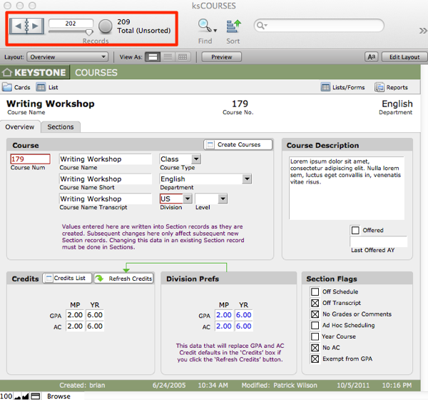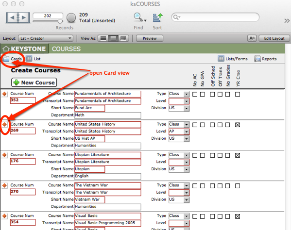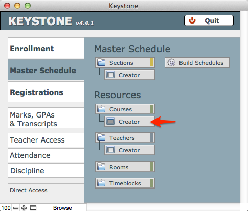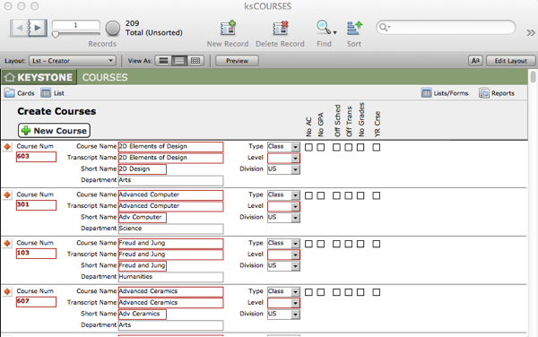 The Course records you create in KEYSTONE can be used for multiple years, although some slight changes occur from year to year. Courses, teachers, rooms and timeblocks are combined to create the sections into which students are scheduled.