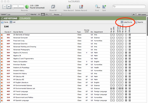 - Navigate to Lists/Forms in ksCOURSES by clicking the Lists/Forms button in the top right task bar.
