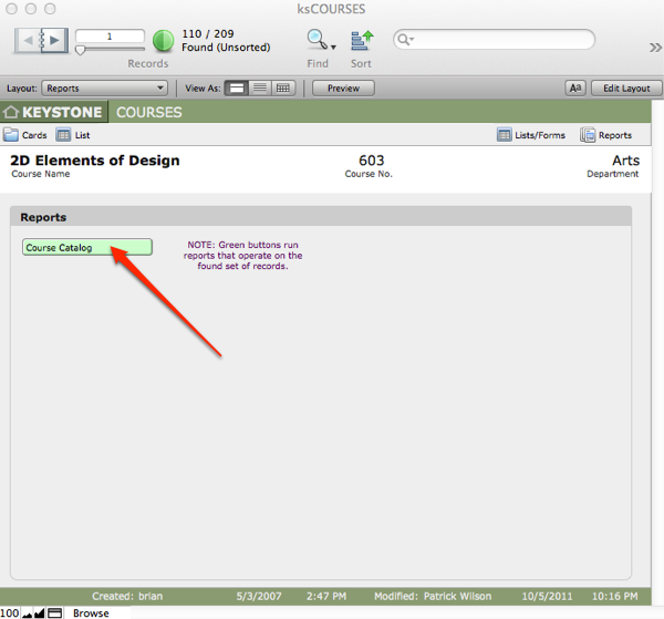 Reports highlighted in green are found set based. In ksCourses, an editable Course Catalog report is available as a starting point. A Level 2 user can adjust the layout to conform to the school’s needs.