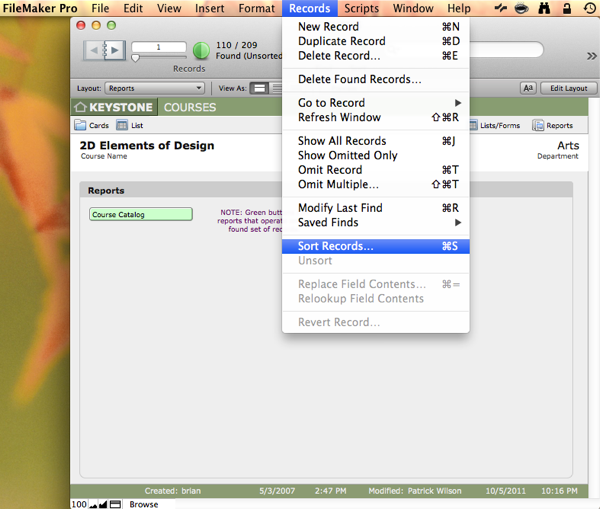- Perform a Find to get your found set of courses for the current Academic Year.