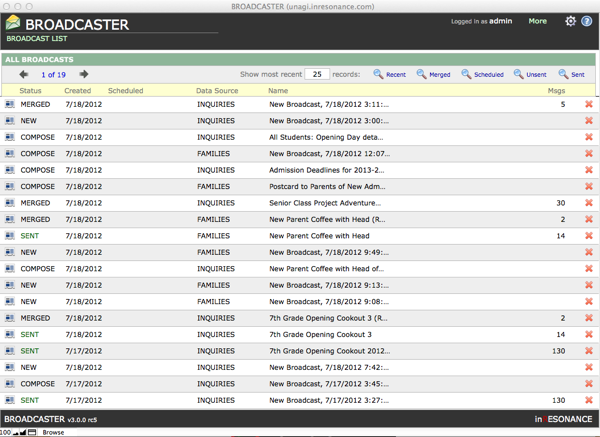• X icon allows you to permanently delete a broadcast record