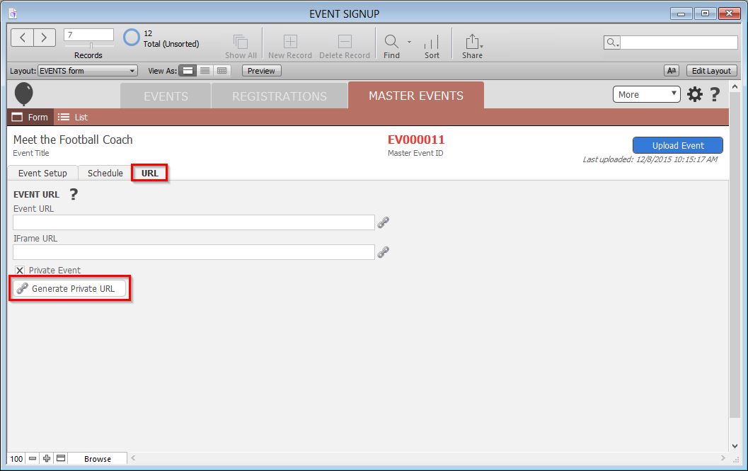 - Click the checkbox next to Private Event.