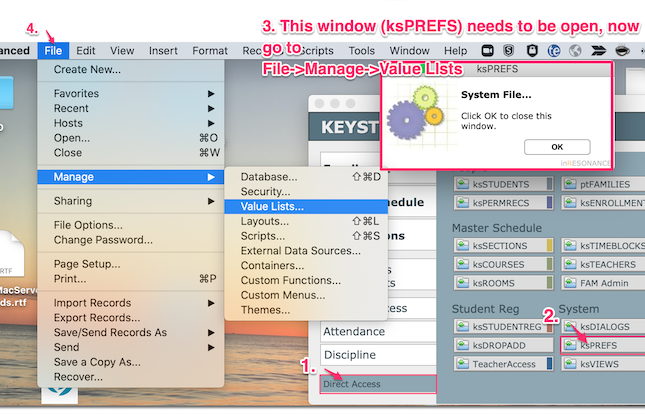 The List you are need to check is “_AcademicYears_working”. Select and edit. Modify these dates in the Use custom values list. Feel free to delete old Academic Years and create additional years, be sure that the next academic year is there and a number of years in the future. These must be created using the xxxx-xxxx format. (2021-2022, 2022-2023, etc.). When complete, hit OK, OK. Close the ksPREFS window. Proceed with the promotion process.