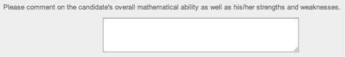 A Text Area is a multi-line text entry box. Recommenders can enter longer responses here. There is no practical character limit.