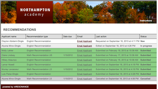When an applicant sends an email request to a recommender from PWS, the recommender will receive an email that includes not only the applicant’s request, but also instructions for logging into a secure, personal account (just like the ones applicants have). A recommender will have one account; if more than one of your applicants requests a recommendation from the same recommender, all the requests from different applicants will appear inside the recommender’s account.