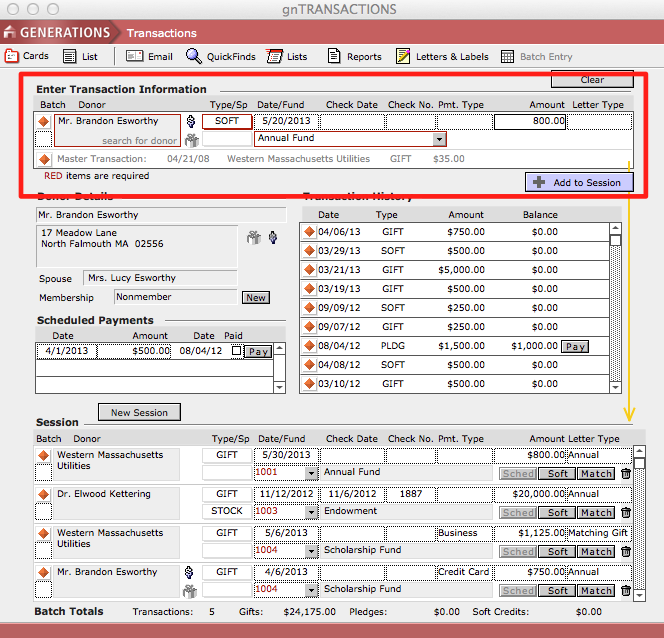 - From the Scripts menu, select Soft Credit This Transaction.