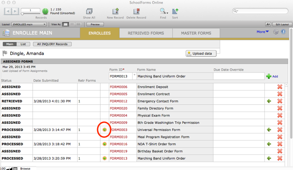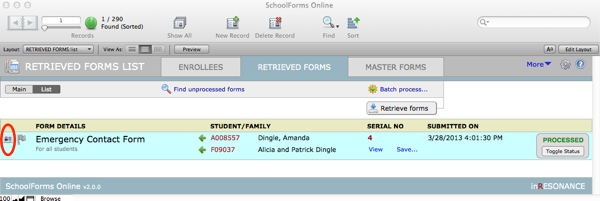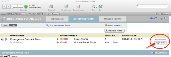 - To reset a form, its status must be PROCESSED. If the status is RETRIEVED, click the Retrieved Forms button to return to the Retrieved Forms List where you can toggle the status of the form to PROCESSED.