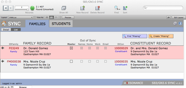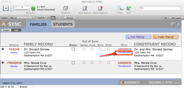 The sbgnSync interface will assist you in making sure the Constituent records in GENERATIONS match the corresponding Families records in SANDBOX. The sbgnSync file sits between the two solutions.