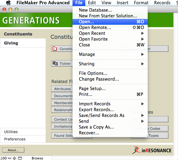 - Select Open in the GENERATIONS FMP FILE menu.