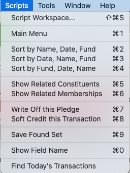 Scripts are available from the Scripts menu located at the top of your screen.