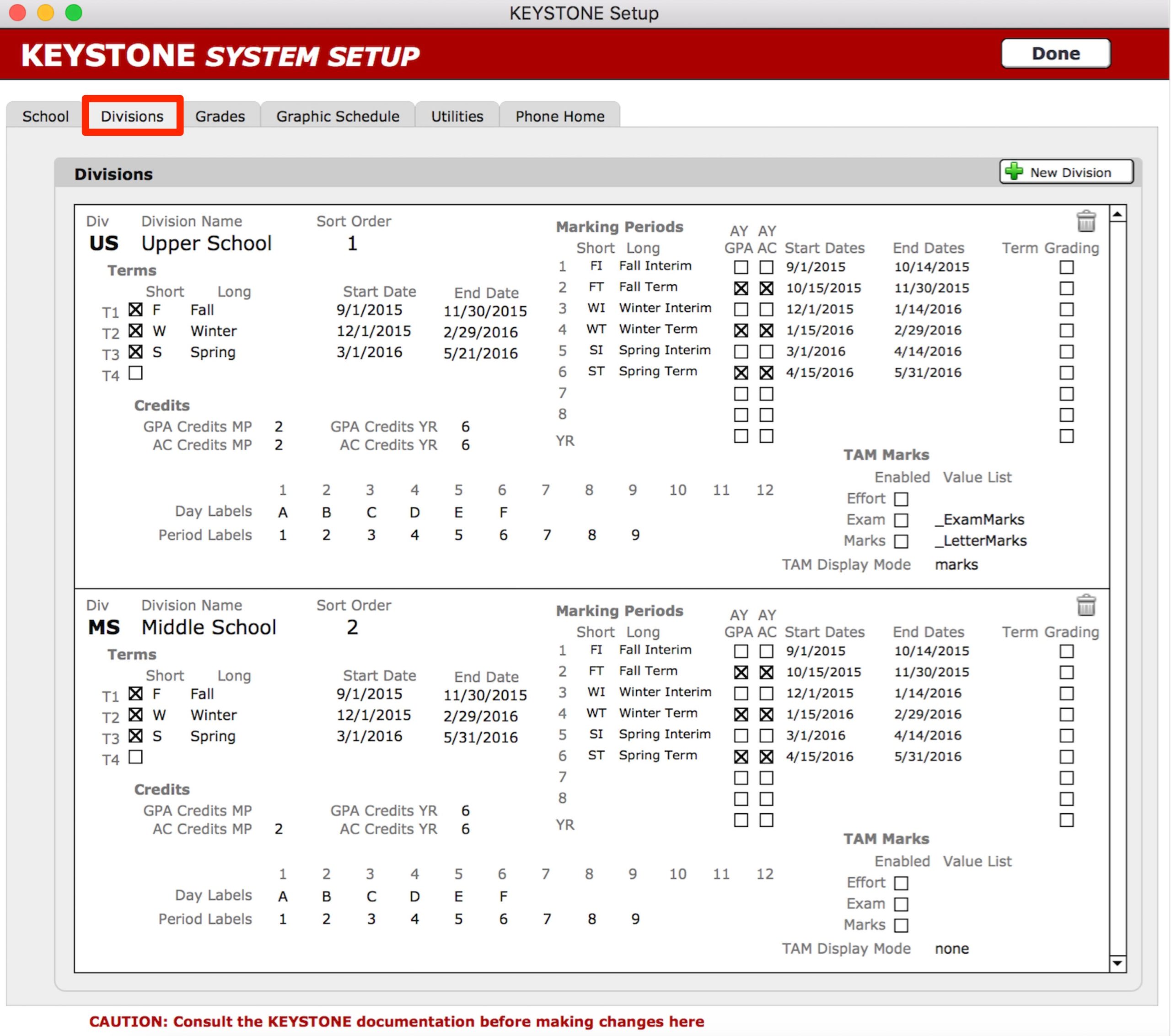 - Click the Divisions tab.