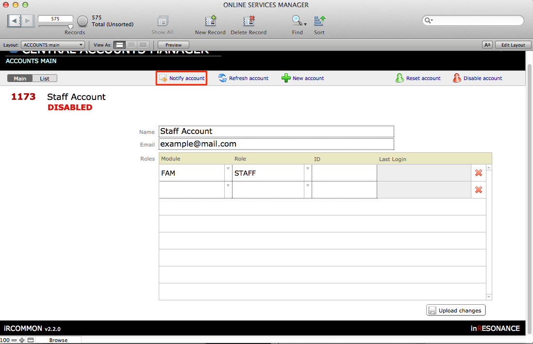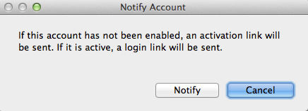 - Click Notify Account. This will send a notification email with instructions about how to proceed.