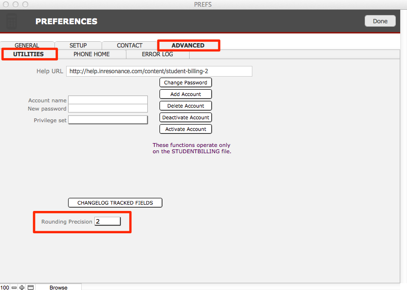The Advanced tab in Student Billing Preferences contains utilities that will be useful when troubleshooting issues with iR.