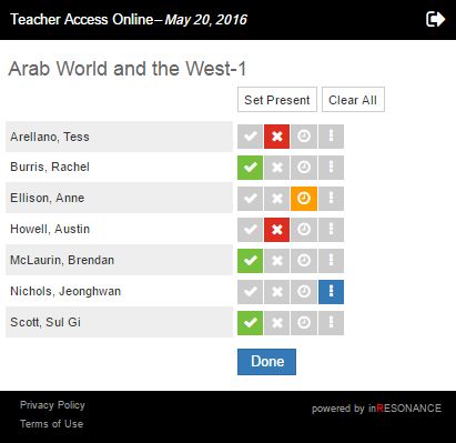 - Click the Clear All button to undo all attendance marks. Attendance notes will not be deleted.