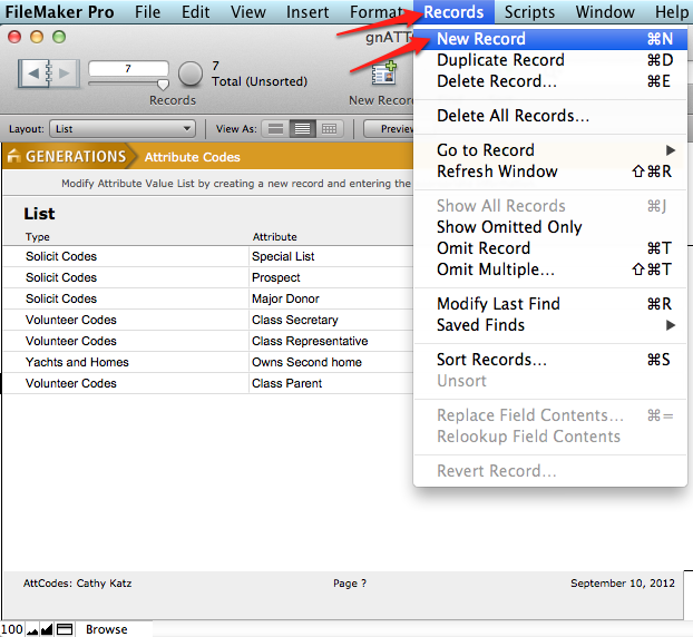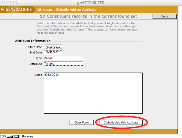 - The attribute will be added to every record in your found set. Now you can move through, record-by-record, and add the particular constituent’s name and any additional notes about their service.