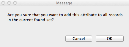 - A dialog box will pop up asking you to confirm that you want to add the attribute to your found set. Click OK.
