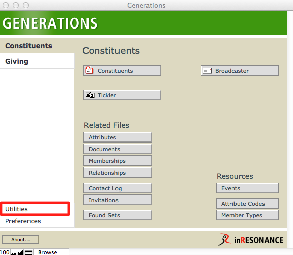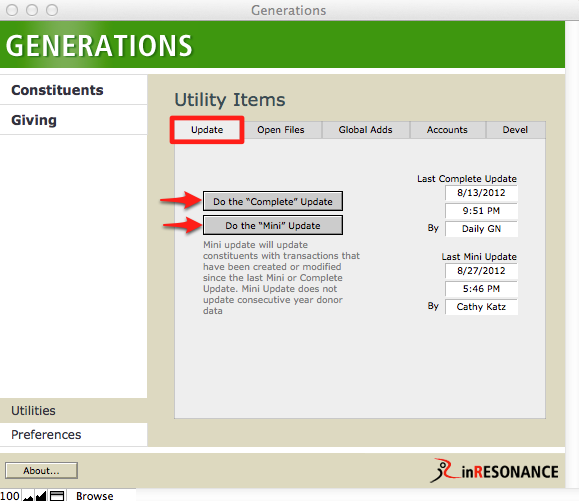 - From Central Navigation > Utilities—A mini or a complete update of all constituent records can be performed.