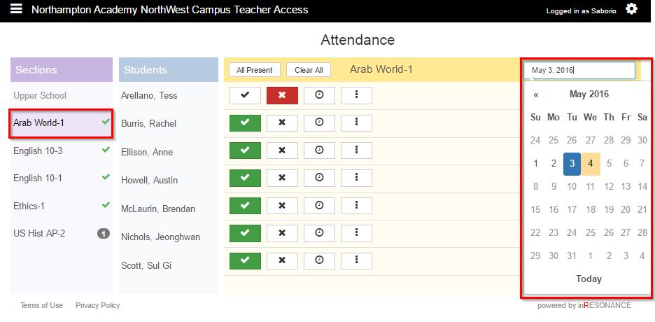 - Select the date you wish to manage attendance for.