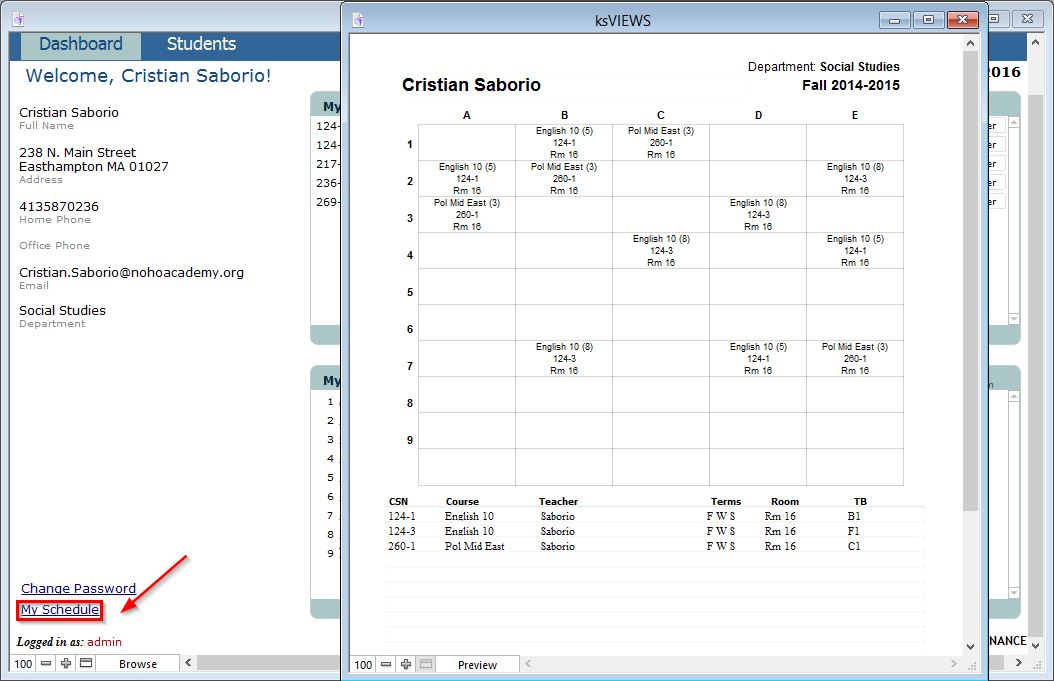 - From the Dashboard, click on the blue text located on the bottom left labeled My Schedule. Your graphic schedule will open in a separate window.